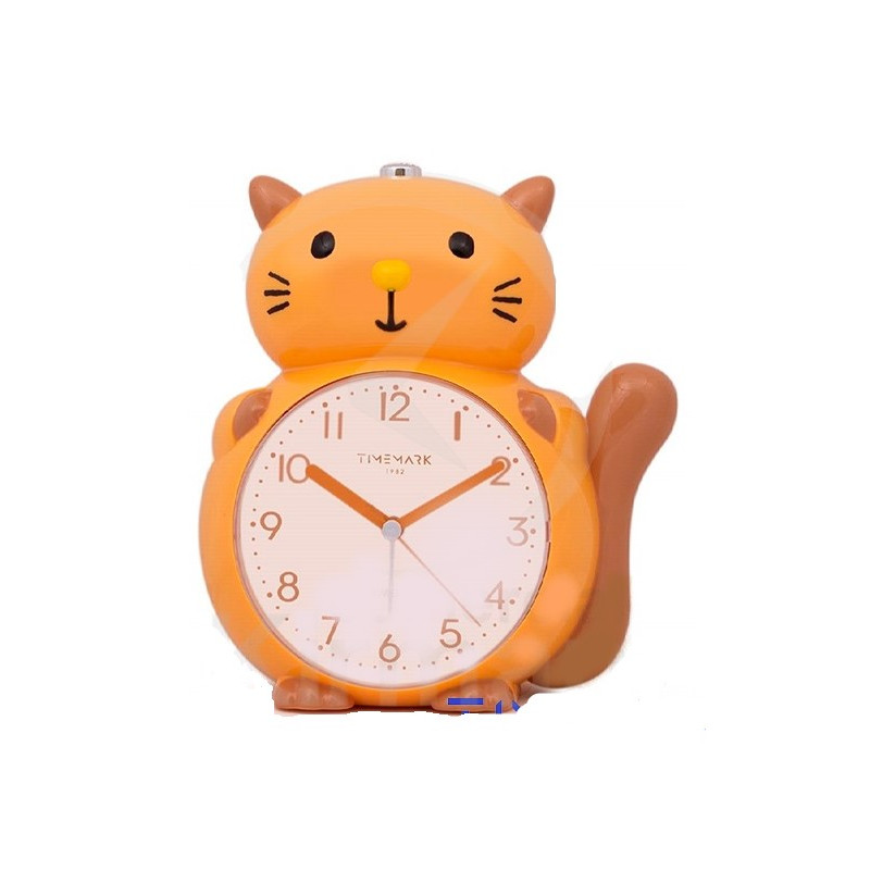 ¬ Detalle: reloj despertador, en forma de gato. Alarma con sonido de campana y melodía.